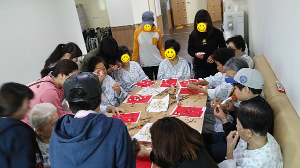 자원봉사학생들과 팝콘을 이용하여