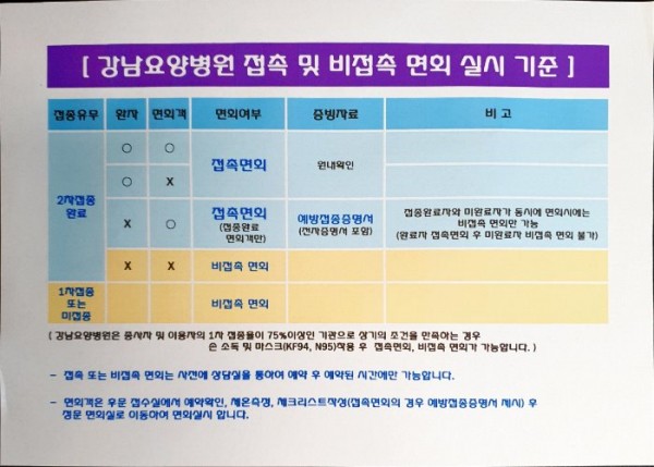 강남요양병원 접촉 및 비접촉 면회 실시기준입니다. 면회신청전 보시고 참고하세요